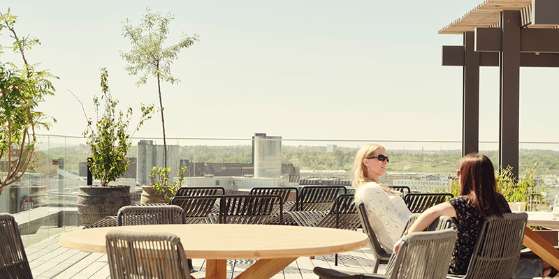 På Origo Top Bar kan du och dina kollegor njuta av spektakulär utsikt, något läskande i glaset och skön musik från härliga DJ:s.