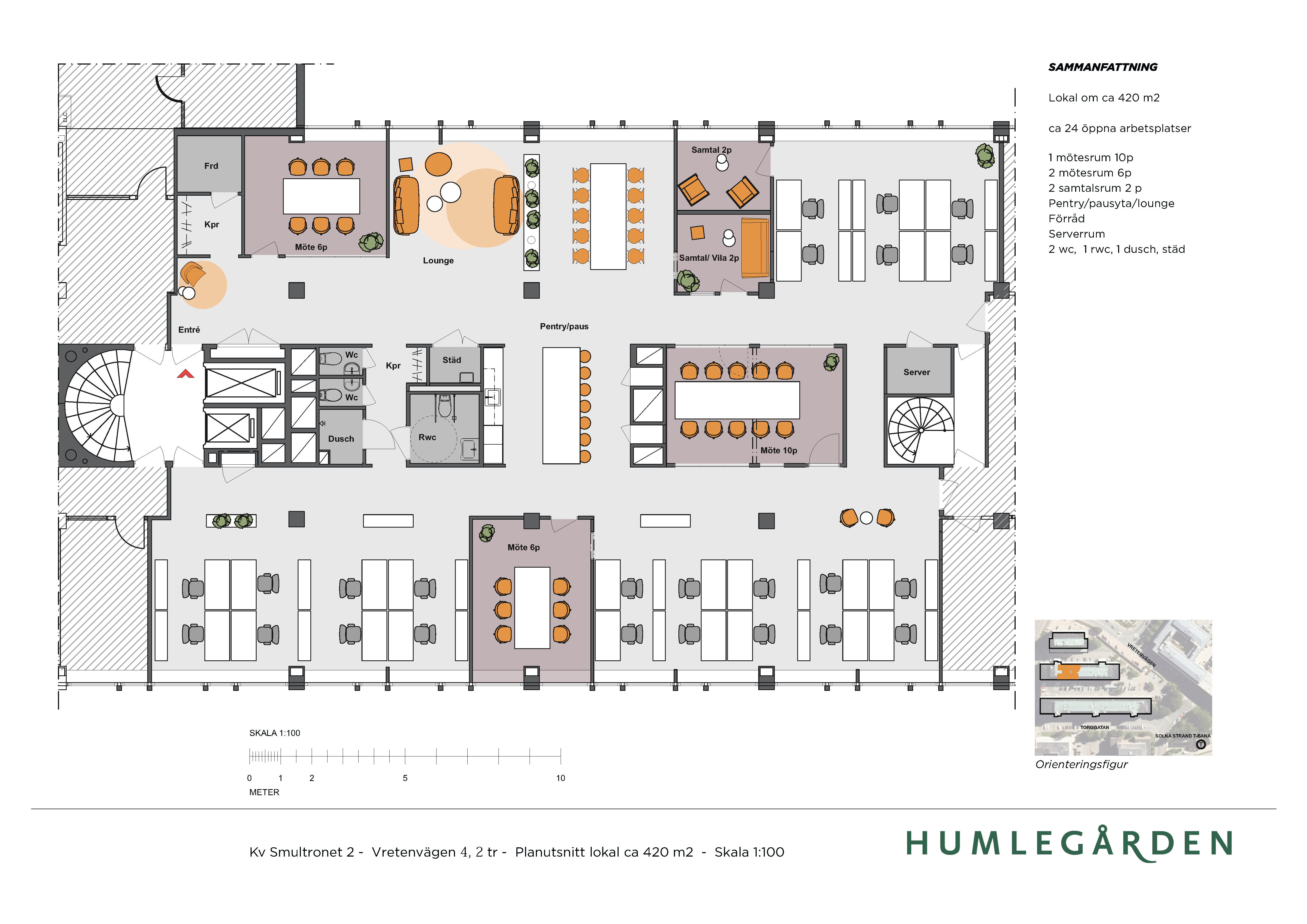 | Area: 420 kvm | Område: Solna strand |