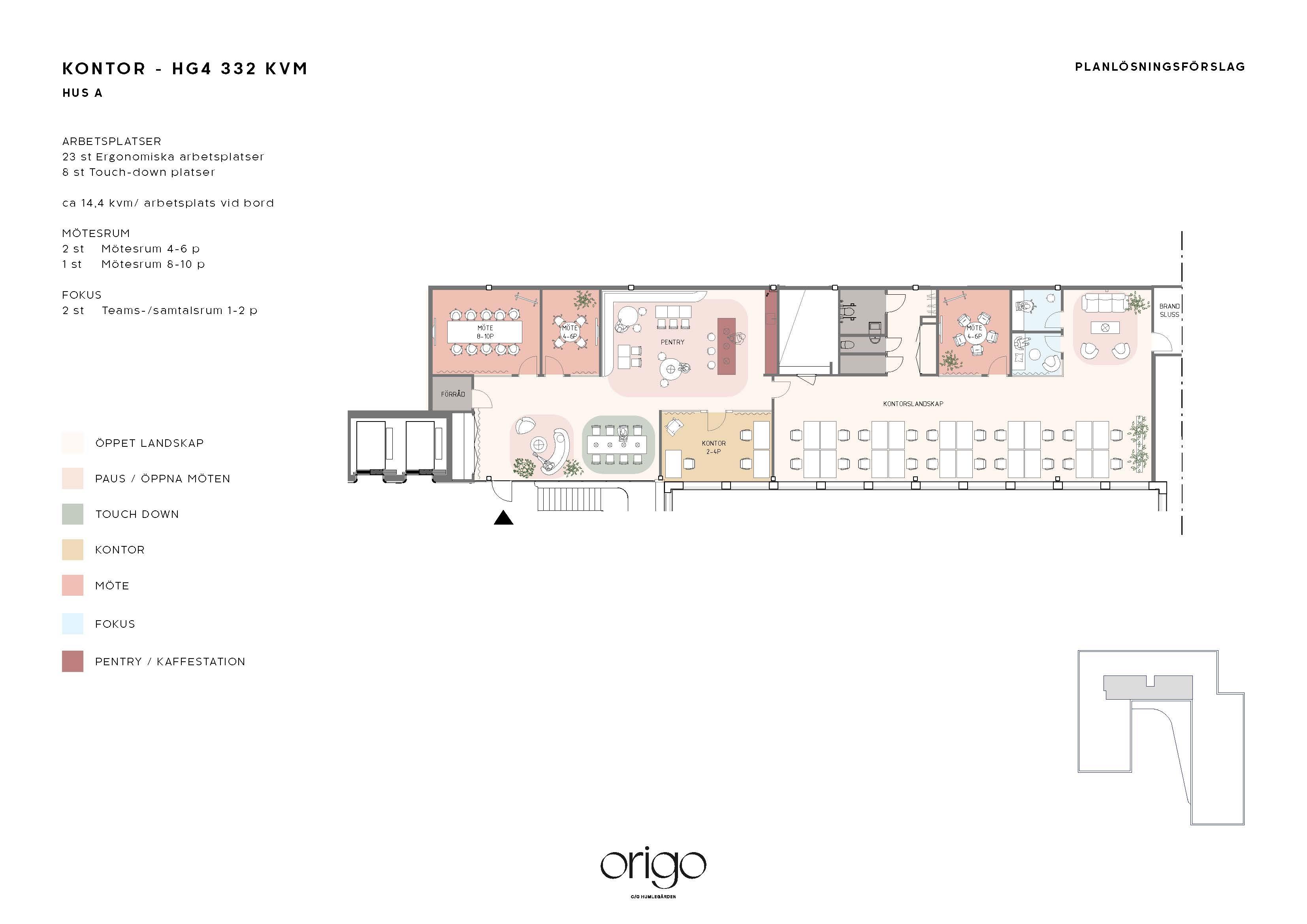 Yteffektiv lokal i Origo med tillgång till flera gemensamma ytor som reception, takterrass, bistro och gym.