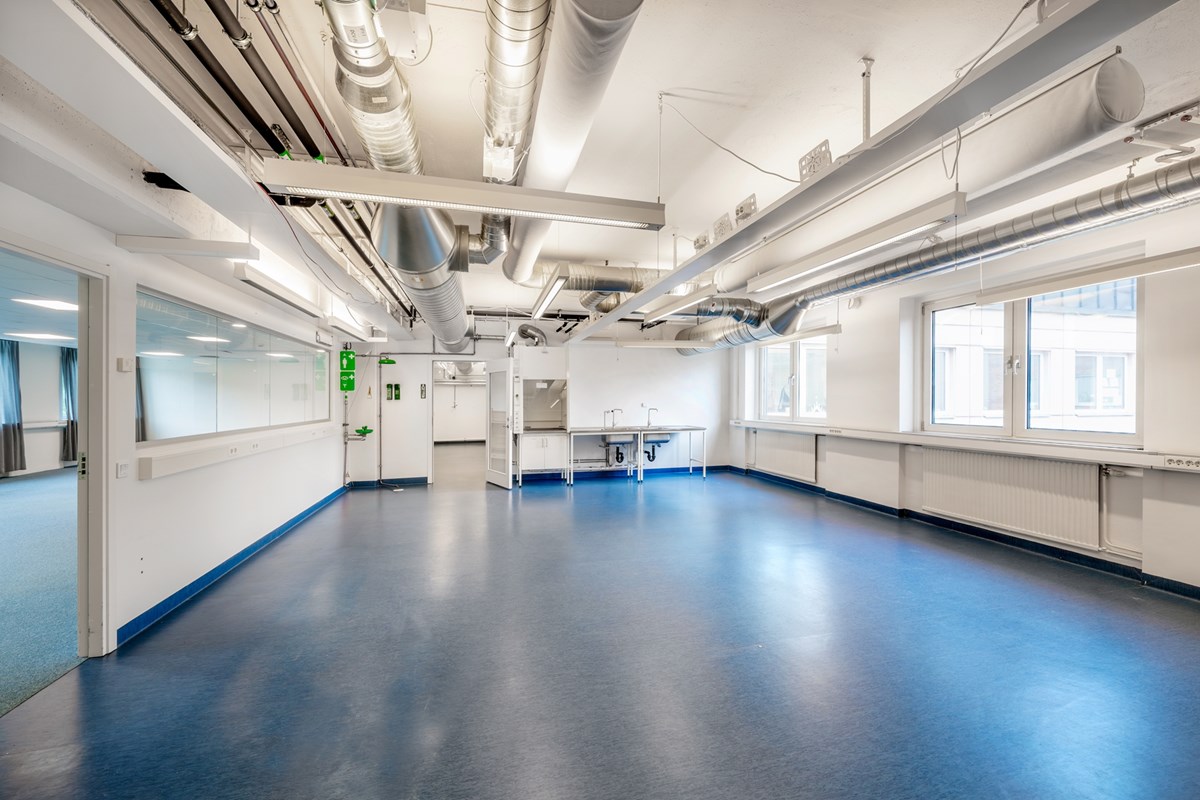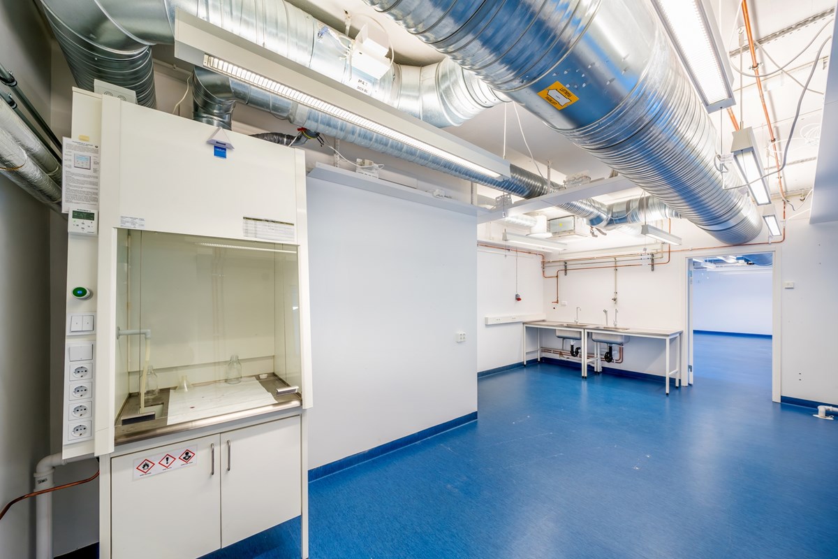 Huset färdigställdes år 1945 men byggdes om på 2010-talet för laboratorieverksamhet. Just dessa lokaler ligger i en del av huset där hyresgästerna delar kök och wc vilka sköts om av hyresvärden. Lokalerna innehåller både kontor och laboratorieyta. Det går att ansluta flertal dragskåp och vi erbjuder även tillgång på avjoniserat vatten, tryckluft och kvävgas.