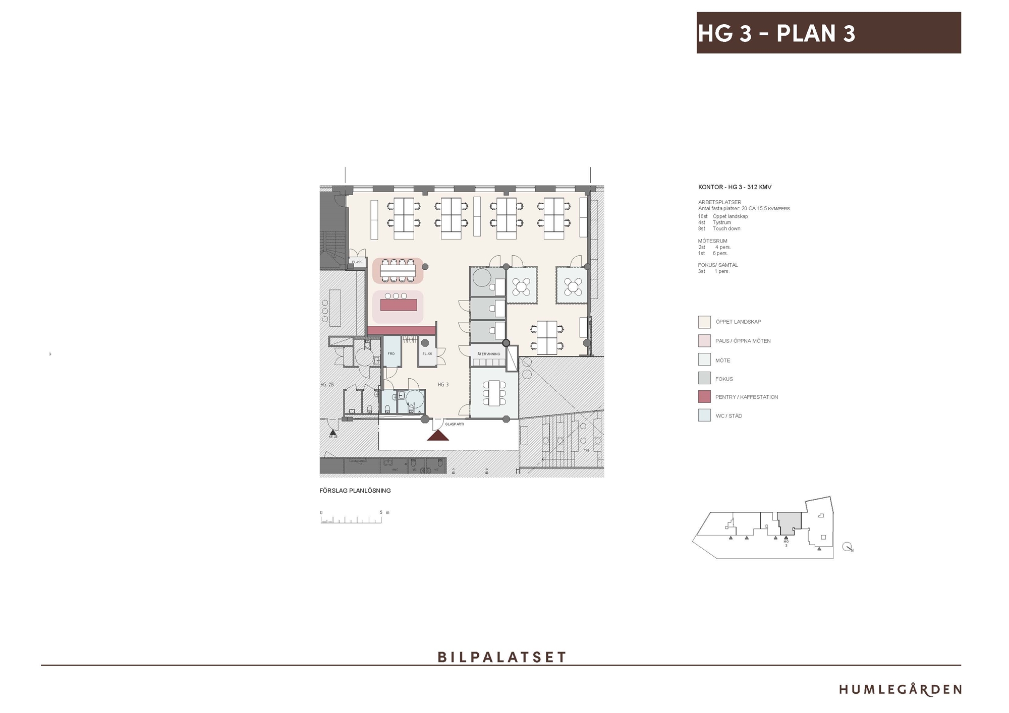 En genomtänkt lokal med smarta lösningar. Här erbjuds 16 arbetsplatser i öppet landskap, 8 flexibla touchdown-platser och ett avskilt tystrum med ytterligare 4 platser. Med pentry, mötesrum i olika storlekar och mindre fokusrum finns allt ni behöver. Fönster en våning upp mot Härdgången bidrar till en ljus och luftig atmosfär. Lokalen blickar ut mot det gemensamma stråket utanför. Inflyttningsklart april 2026.