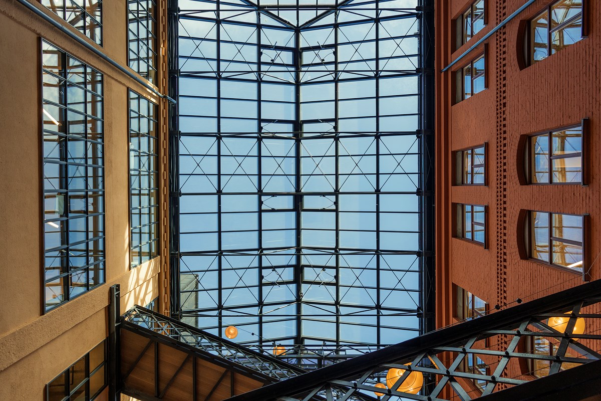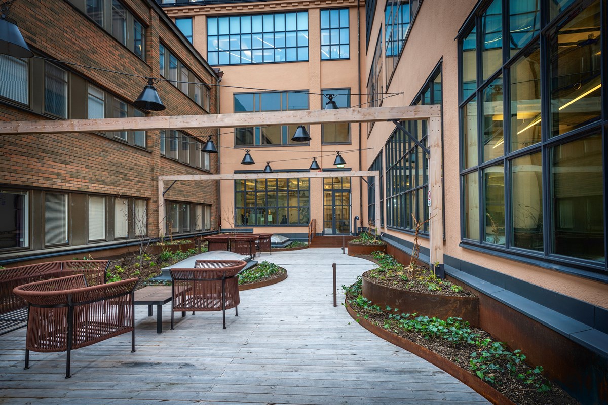 Det har tagits ett helhetsgrepp om fastigheten för att lyfta fram de kvalitéer som finns i de gamla industrilokalerna, i form av stora öppna ytor och mycket dagsljus, som ger fantastiska förutsättningar för ett modernt kontor. Förnyelsen av byggnaden handlar till stor del om återskapandet av befintliga fastighetsvärden, vilket inte minst tar sig uttryck genom att fönsterpartier som anpassats för låga takhöjder bytts ut mot nya fönsterpartier i husets ursprungliga stil och cellkontoren har tagits ned i förmån för öppna ytor.