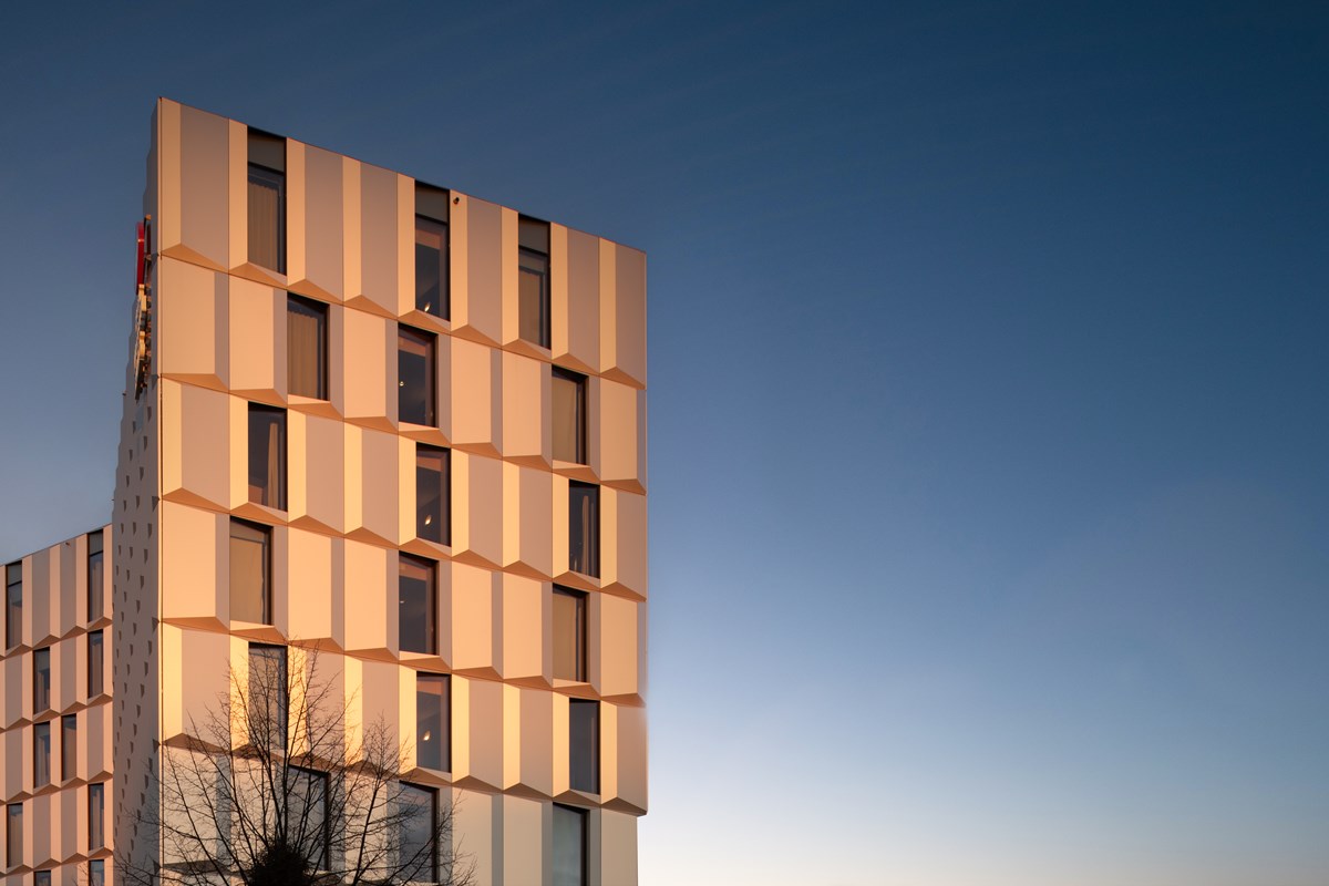 På gränsen mellan de snabbt växande kommunerna Solna och Sundbyberg har Humlegården byggt ett nytt hotell med en spännande arkitektonisk utformning.